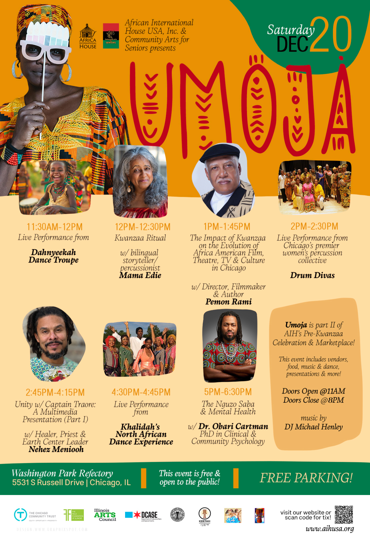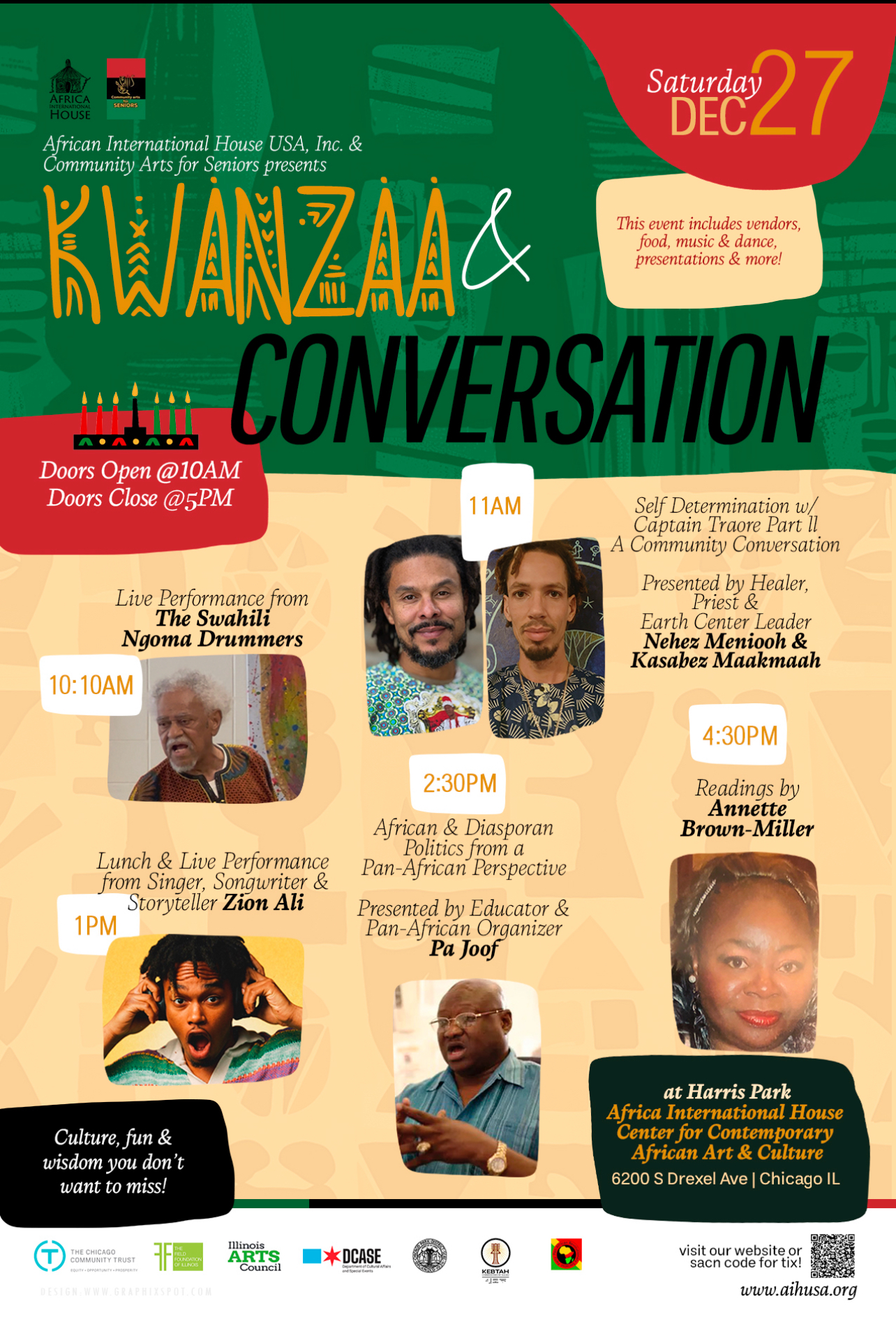 Join Africa International House USA, Inc. for a joyful, day-long celebration — Kwanzaa Our Way! This special event, part of AIH’s Pre-Kwanzaa Celebration & Marketplace, honors our rich heritage, creativity, and community spirit through art, fashion, dance, and fellowship.